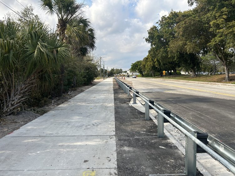 Project improvements include roadway widening and reconstruction, milling and resurfacing, drainage improvements, constructing a ten-foot shared-use path on the west side of the roadway and a 6-foot sidewalk on the east side, driveway reconstruction, installation of speed tables, bus shelters and pads, replacing guardrail and installing lighting infrastructure along the newly constructed sidewalks.